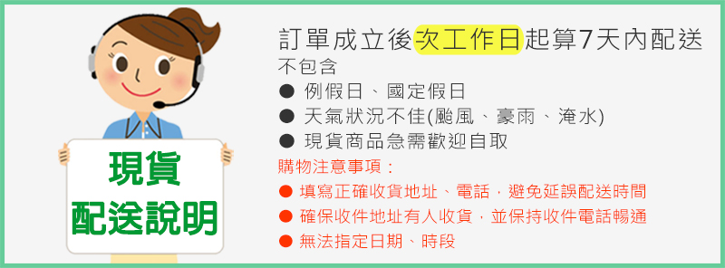 ◆配送說明:3 至 14 個工作天到貨(不包含假日) 。